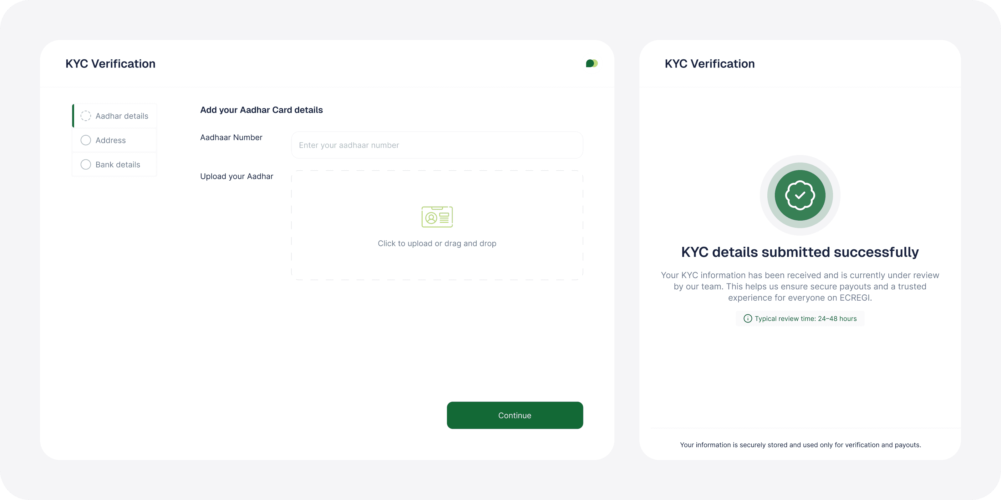 Onboarding was designed to be quick and unintimidating. Users sign up with minimal details and are guided step by step instead of being asked to fill long forms. Associates follow a structured onboarding flow with verification steps, making expectations clear from the beginning.