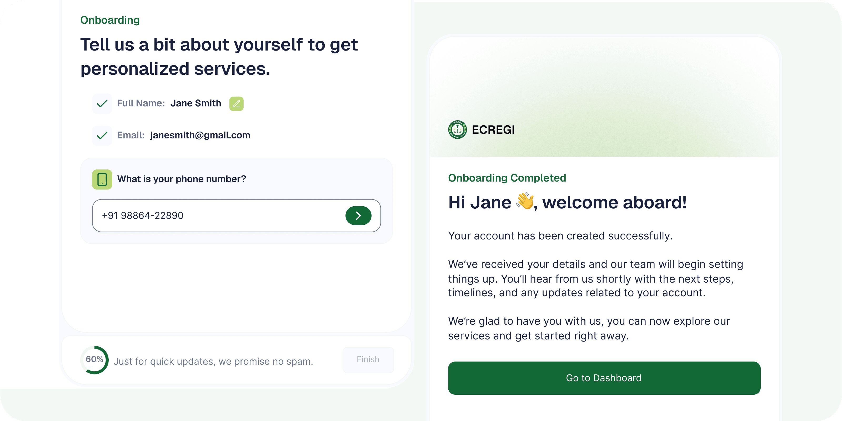 ECREGI turned a traditionally confusing process into a guided and transparent experience. By focusing on clarity, communication, and accountability, the platform helped users feel confident at every step while enabling the business to scale efficiently. The result is a system that feels human, reliable, and easy to use even for first-time users.