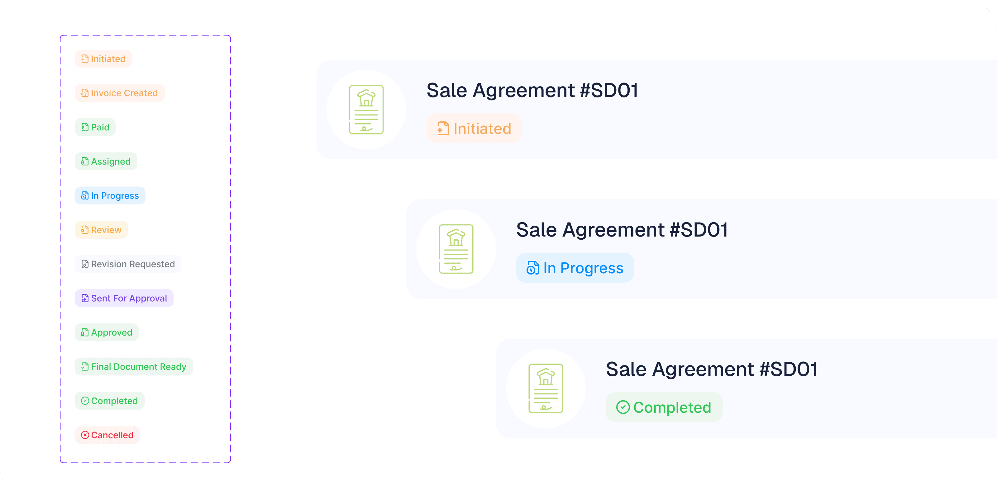 Every service moves through clearly defined stages from start to completion. These states help users understand progress, reduce uncertainty, and trigger the right actions at the right time. Clients no longer need to ask for updates because the system shows them automatically.